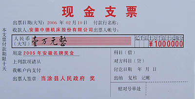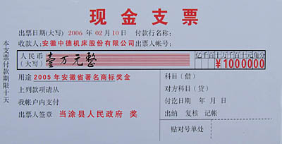 “中德機床”獲當涂縣2005年度“創(chuàng)立品牌獎”