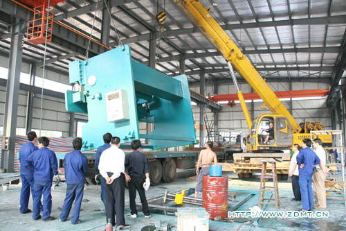 2008年5月7日下午,我公司自主研發(fā)的500噸6米(產品型號:WC67Y-500/6000)大型液壓板料折彎機下線并進入交付運輸環(huán)節(jié)。 該產品系應國內某大型企業(yè)要求定制!這其中凝聚了中德研發(fā)人員和生產人員的不懈努力,他們上下齊心協(xié)力相互配合,在這個生產計劃已經排得滿滿的時期,保質保量的完成了這臺大型機器。