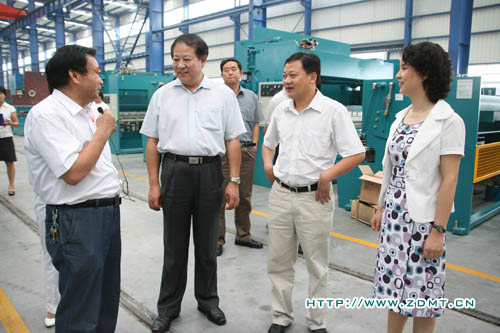公司董事長(zhǎng)鄭長(zhǎng)玉向領(lǐng)導(dǎo)一行匯報(bào)了中德的發(fā)展歷程及目前的發(fā)展?fàn)顩r。重點(diǎn)介紹了我公司在車間管理和質(zhì)量監(jiān)督體制方面的完善工作,并從目前的發(fā)展局勢(shì)展望更好的發(fā)展前景。王司長(zhǎng)也關(guān)切地向公司領(lǐng)導(dǎo)了解一些機(jī)器方面的情況,在聽到鄭董事長(zhǎng)匯報(bào)說中德不會(huì)因目前的成績(jī)而有絲毫懈怠時(shí),王司長(zhǎng)滿意的點(diǎn)了點(diǎn)頭。參觀過大型裝配車間后,領(lǐng)導(dǎo)一行來到了成品車間,擺放在這里的一臺(tái)雙機(jī)聯(lián)動(dòng)數(shù)控折彎?rùn)C(jī)迅速地吸引了大家的眼球,鄭董事長(zhǎng)向領(lǐng)導(dǎo)介紹說這臺(tái)機(jī)器已經(jīng)經(jīng)過商檢并即將發(fā)往波蘭并非常自豪地說這位波蘭客商正是看中了中德的實(shí)力才會(huì)放心的與我們合作。隨后公司總經(jīng)理鄭小平向領(lǐng)導(dǎo)介紹了目前中德的國外代理點(diǎn)及國外銷售情況,表示中德還有非常大的外貿(mào)發(fā)展空間。