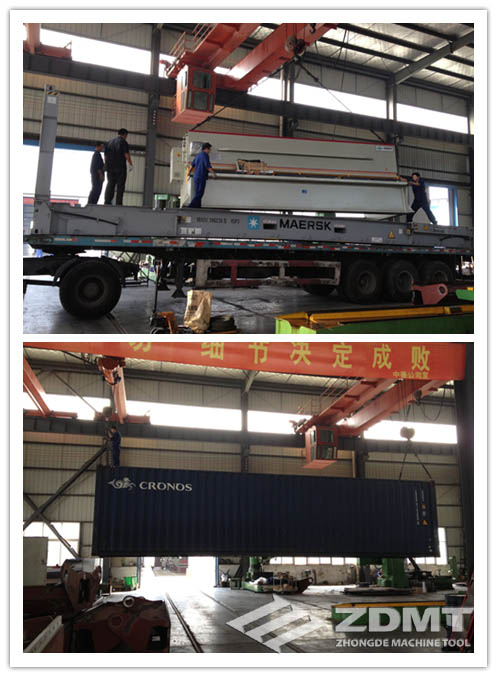 公稱壓力600噸、折彎能力長達7米的折彎機,以及剪切12mm、寬度6米的剪板機,其重量和體積遠遠超過了一般的海運貨柜規(guī)格。尤其是折彎機,重量超過了70噸,沒有過硬的技術(shù)和質(zhì)量,難以承接這樣大型設備的定做;加上機器出口,還要考慮如何拆裝運輸以及到港之后如何安裝調(diào)試等多方面的因素,更是對工廠大型設備出口經(jīng)驗能力的考量。